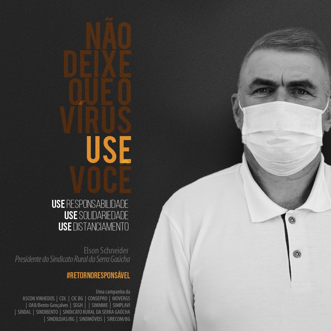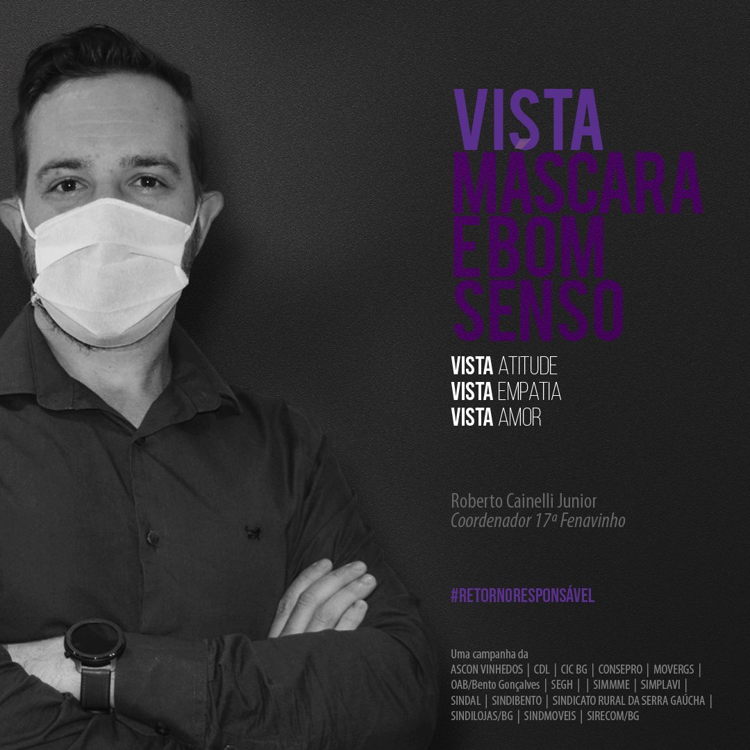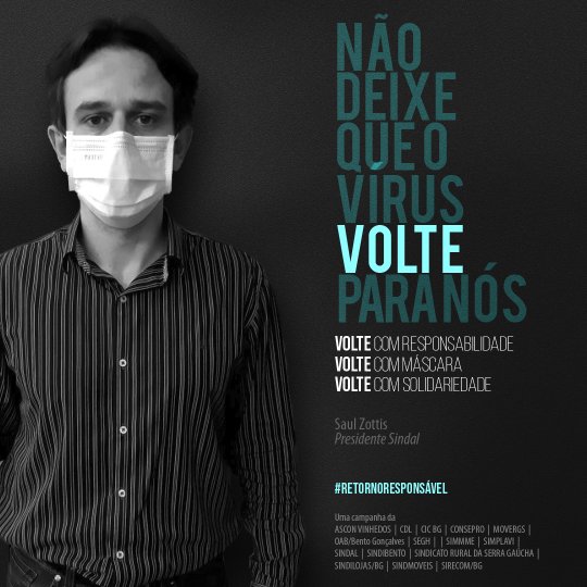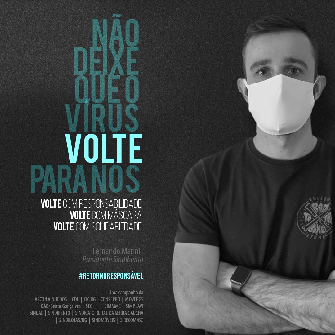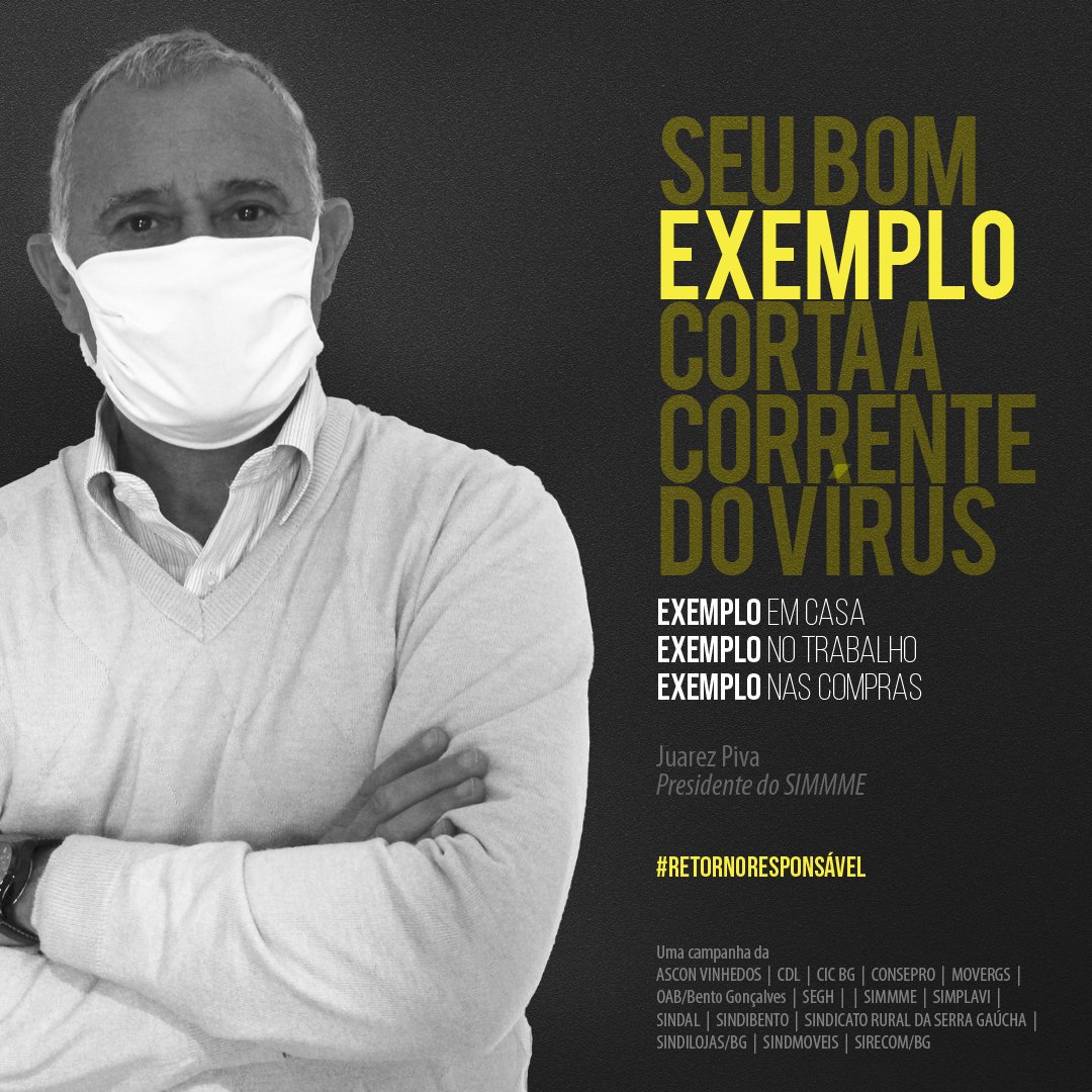 A campanha #retornoresponsavel é uma iniciativa de Ascon Vinhedos, CDL, CIC BG, Consepro, Movergs, OAB Bento Gonçalves, SEGH Uva e Vinho, Simmme, Simplavi, Sindal, Sindibento, Sindicato Rural da Serra Gaúcha, Sindilojas/BG, Sindmóveis e Sirecom/BG.